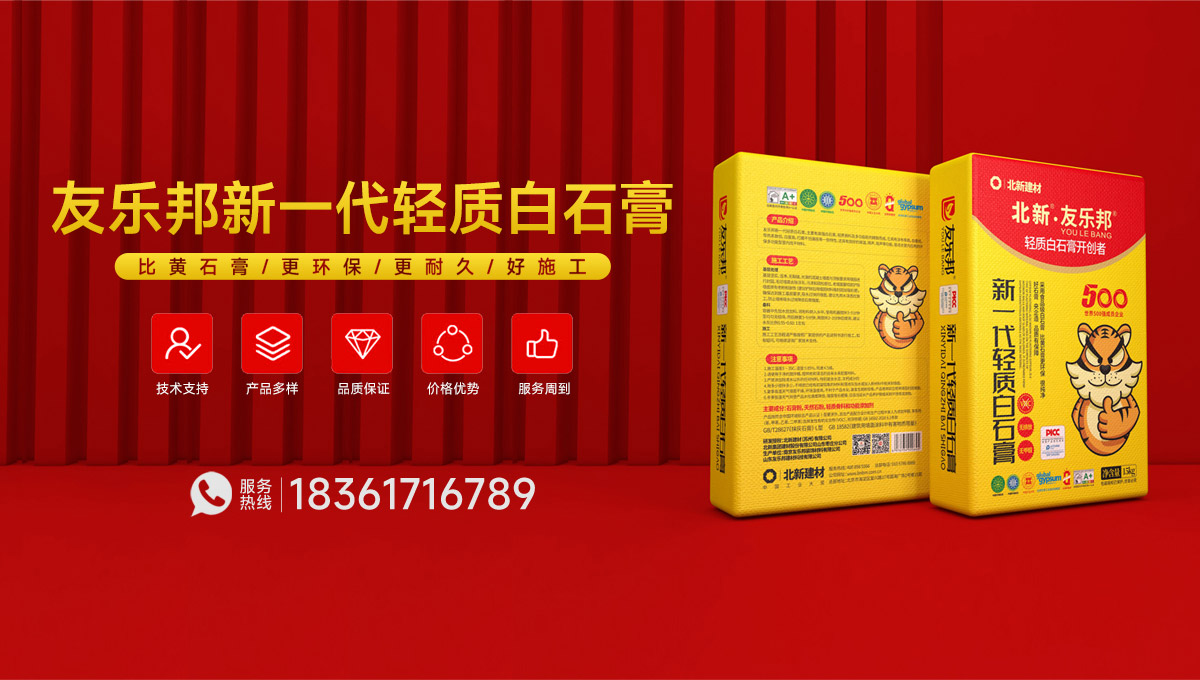 山东友乐邦建材科技有限公司,位于山东省枣庄市,总投资一期1.1亿元,专业研发石膏15年,友乐邦致力于打造与建筑同寿命基材石膏。友乐邦新一代轻质白石膏,原材料采用食品级白石膏,具有白度高、更环保、更耐久、好施工等优势。